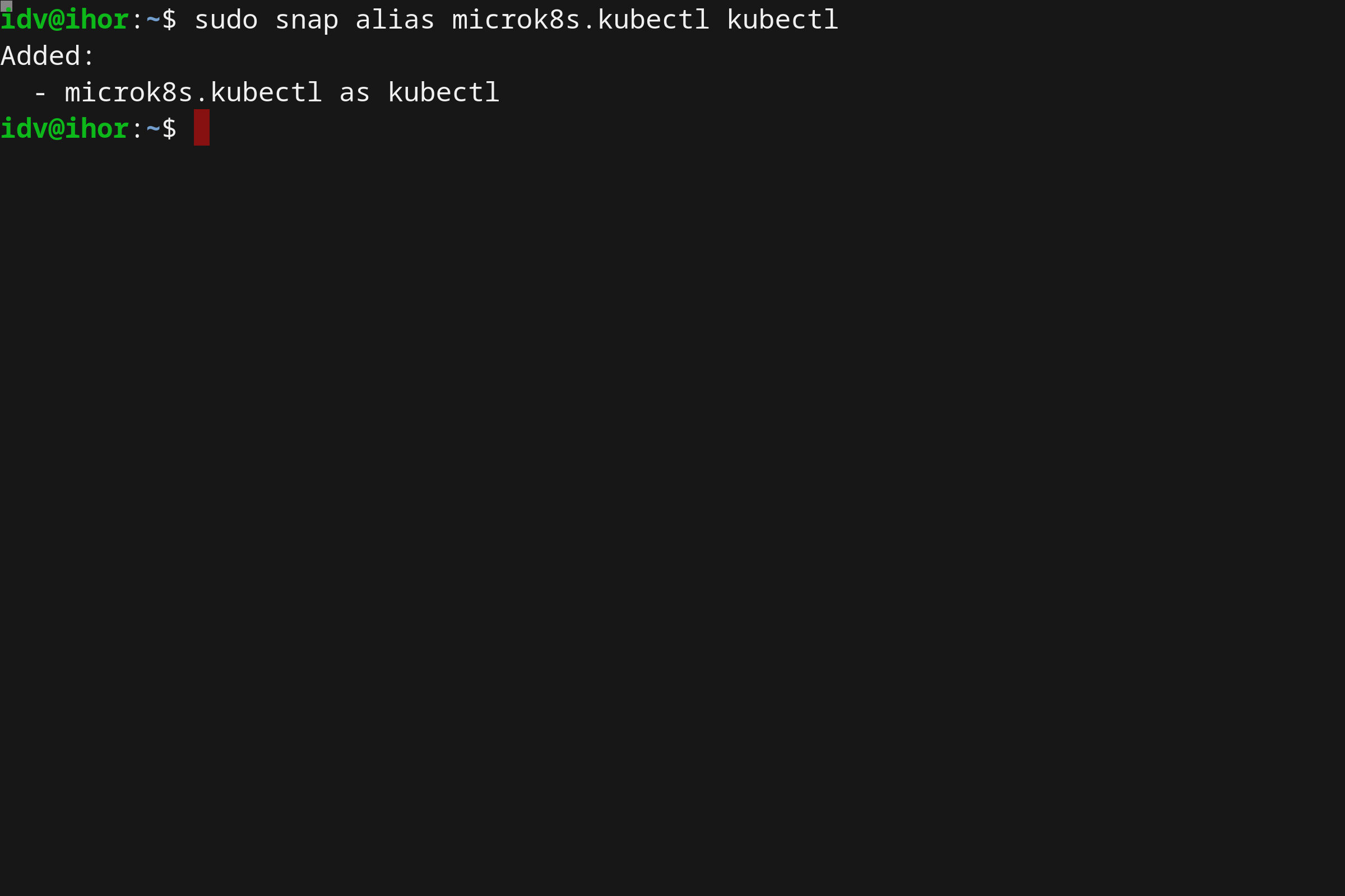 sudo snap alias microk8s.kubectl kubectl